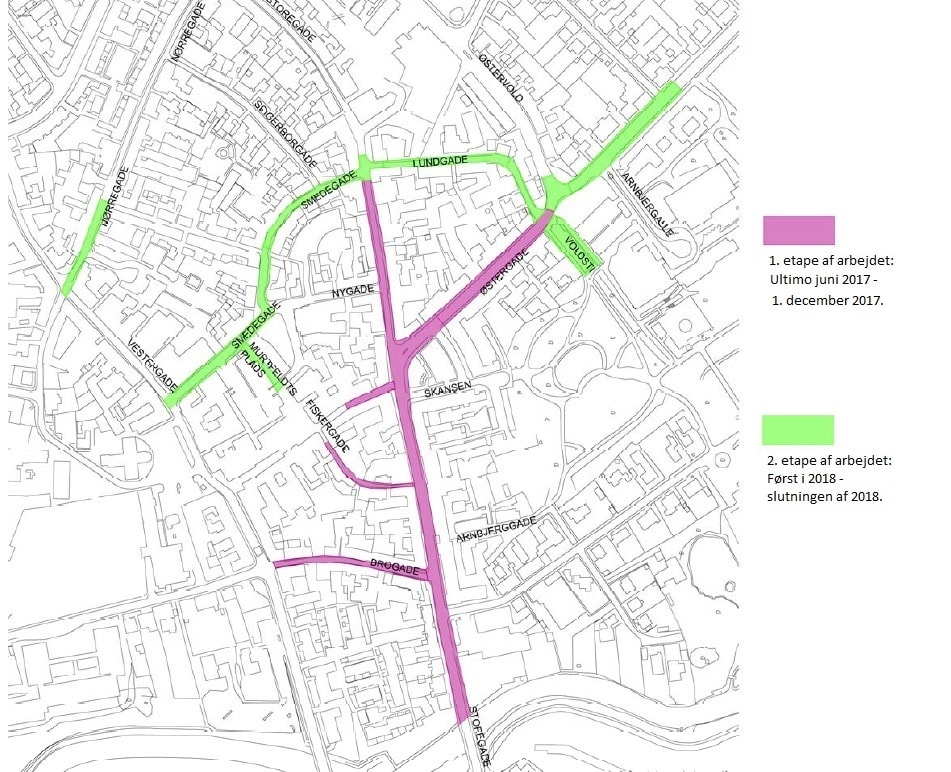 Arbejdet i de resterende gader starter først i 2018.